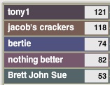 Example: I ask "What is the capital of Aus..." and Fred buzzes, and I shut up. He says "Canberra" I accept his answer and finish the question: "What is the capital of Austria?" and then invite the remaining contestants to buzz if they agree. Nobody agrees, and everybody gets a point, apart from Fred who loses two! Yeay!!