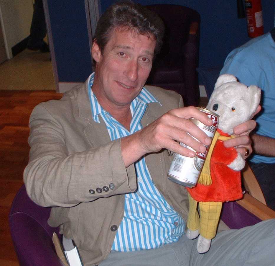 6:00 ish: You trip over a languid Jeremy Clarks...D'oh d'oh d'oh I mean Paxman I mean Mr Paxman who is leaning against a Canteen Shelf. You know he's a mortal who gets totally pissed off with sycophantic behaviour, but you have to talk, 'cos you would do to it to anybody else, so why treat him differently. He is just like on telly. He is sardonic, funny and dismissive of foolishness. You feel foolish. Thank goodness you have your team. How can they possibly eat at a time like this?